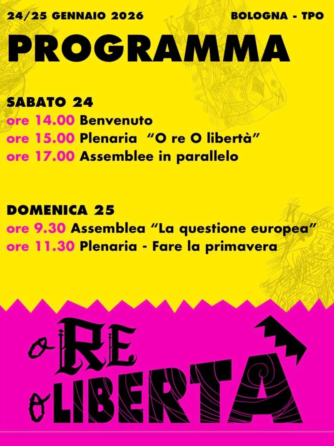 Assemblea nazionale O re O libertà – Bologna, 24-25 gennaio 2026