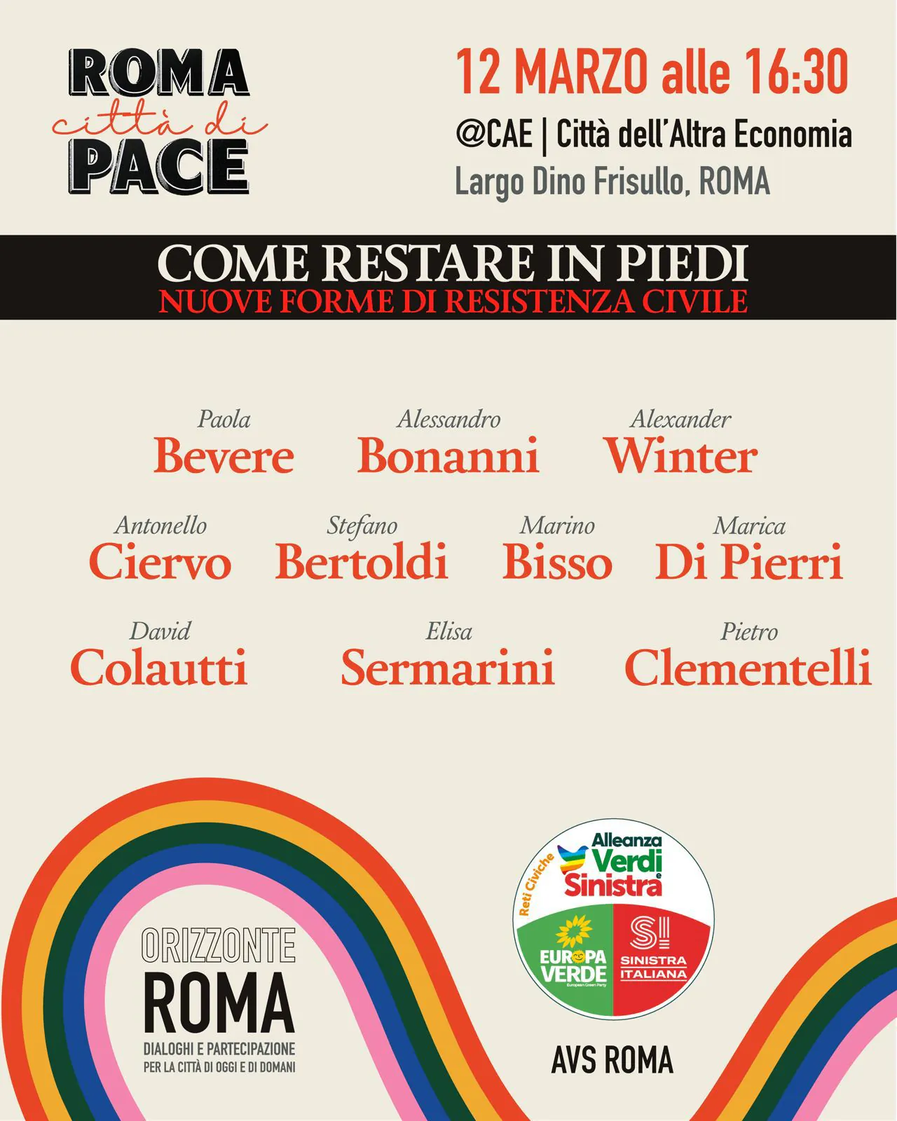 Il 12 marzo alle 16:30 alla CAE – Città dell’Altra Economia di Roma si terrà un incontro pubblico dedicato a una domanda sempre più urgente: come restare in piedi di fronte a un mondo attraversato da guerre, crisi climatica e restringimento degli spazi democratici?