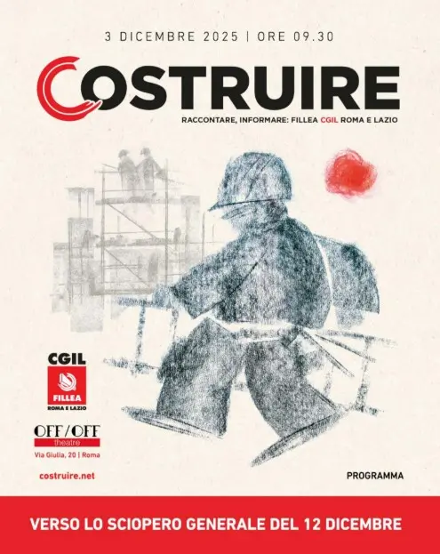 Il 3 dicembre “Costruire”, l’iniziativa della Fillea CGIL Roma e Lazio, apre uno spazio pubblico necessario: parlare di città, lavoro, casa, diritti in un momento in cui lo sciopero generale del 12 dicembre chiama tuttə a scegliere da che parte stare.