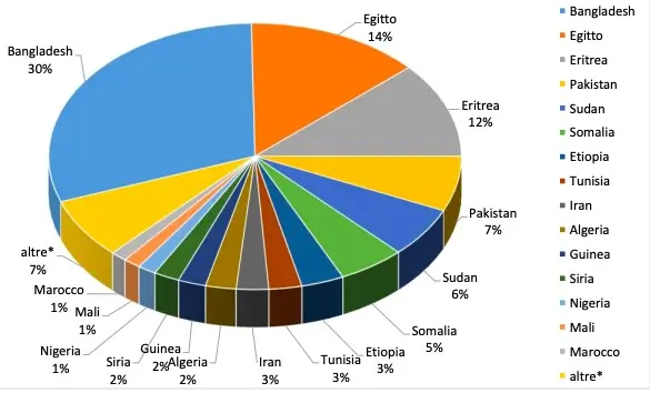 Partendo proprio dai dati pubblicati dal Ministero dell’Interno (aggiornati all’11 dicembre 2025), quest’anno sono sbarcate sulle coste italiane 64.614 persone. Un numero tale da non riempire neanche lo stadio San Siro di Milano, il più grande d’Italia per capienza con circa 76mila posti. Si tratta di persone provenienti per lo più dal Bangladesh (19.562), seguito dall’Egitto (8.841). Non a caso due tra i Paesi considerati “sicuri”. La lista più che arrivare da una valutazione oggettiva sembra avere una valenza strumentale. Come dichiarato qualche anno fa anche dall’Agenzia dell’Unione europea per l’asilo, le liste coincidono con le nazionalità di maggiore arrivo oltre che trattarsi di Stati con i quali i governi che le stilano hanno degli interessi.